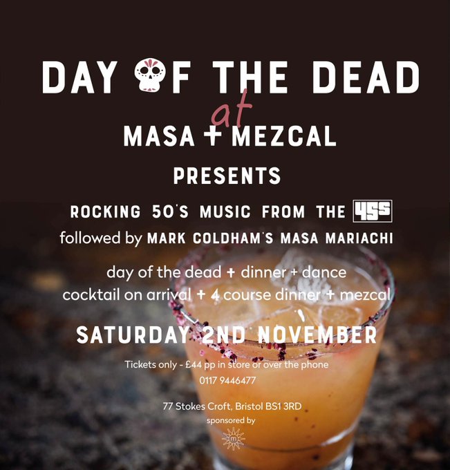 This Day of the Dead party at Masa & Mezcal on Stokes Croft will feature a specially-created menu, cocktails, live music and more.